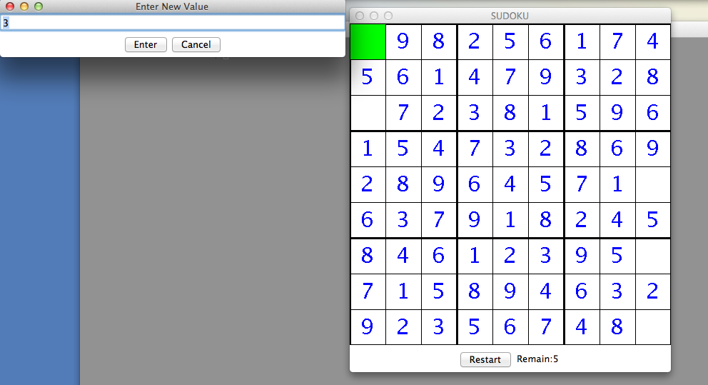 - A mouse click on a point inside a Sudoku cell should produce a pop-up dialog box