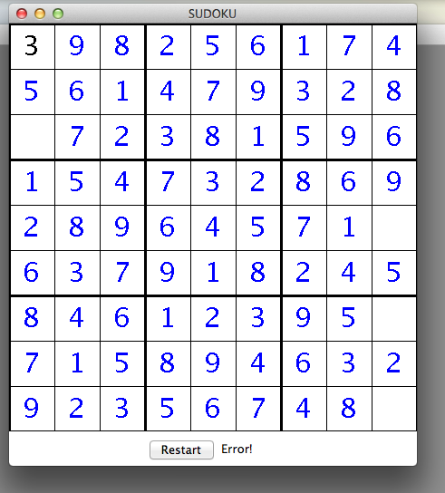 to the program before hand; the program will prevent the user to complete the grid with